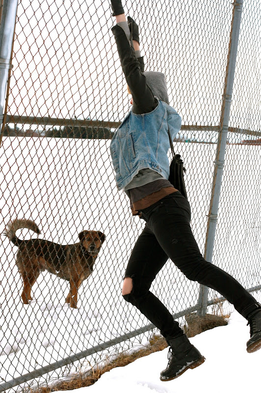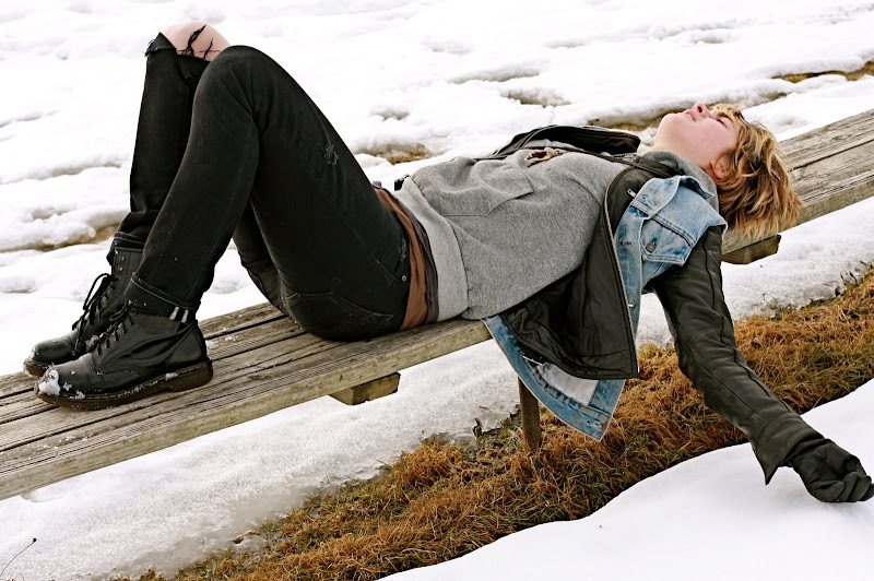 Wearing Rackk and Ruin Diablo Spiked Headband, vintage Levis vest and hoodie, Mossimo leather jacket, Gap jeans and Dr Martens and cast hawks foot. . . .