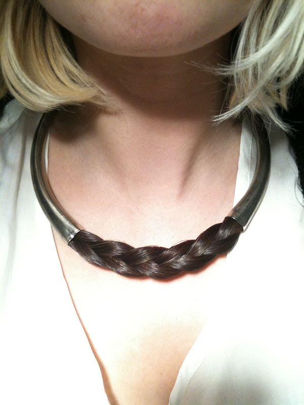 I just wanted to share with you guys a new necklace prototype i made the other day . . . The hair is horse-tail. The silver tubes are from a broken necklace i bought at a pawn shop a while ago. I'm going to have to design another pair of the graduated tubes and have them cast in order to make/sell more of these necklaces.
